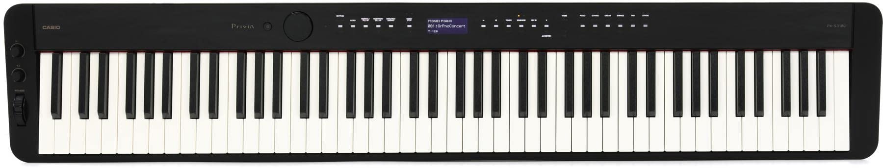 Casio Privia PX-S3100 Portable Digital Piano, with 88 Weighted Keys, 700 Tones, 200 Rhythms, Touch Sensor Controls, Sustain Pedal, Bluetooth, USB, AC Adapter, 16W Speakers, Gloss Black (PX-S3100BK)