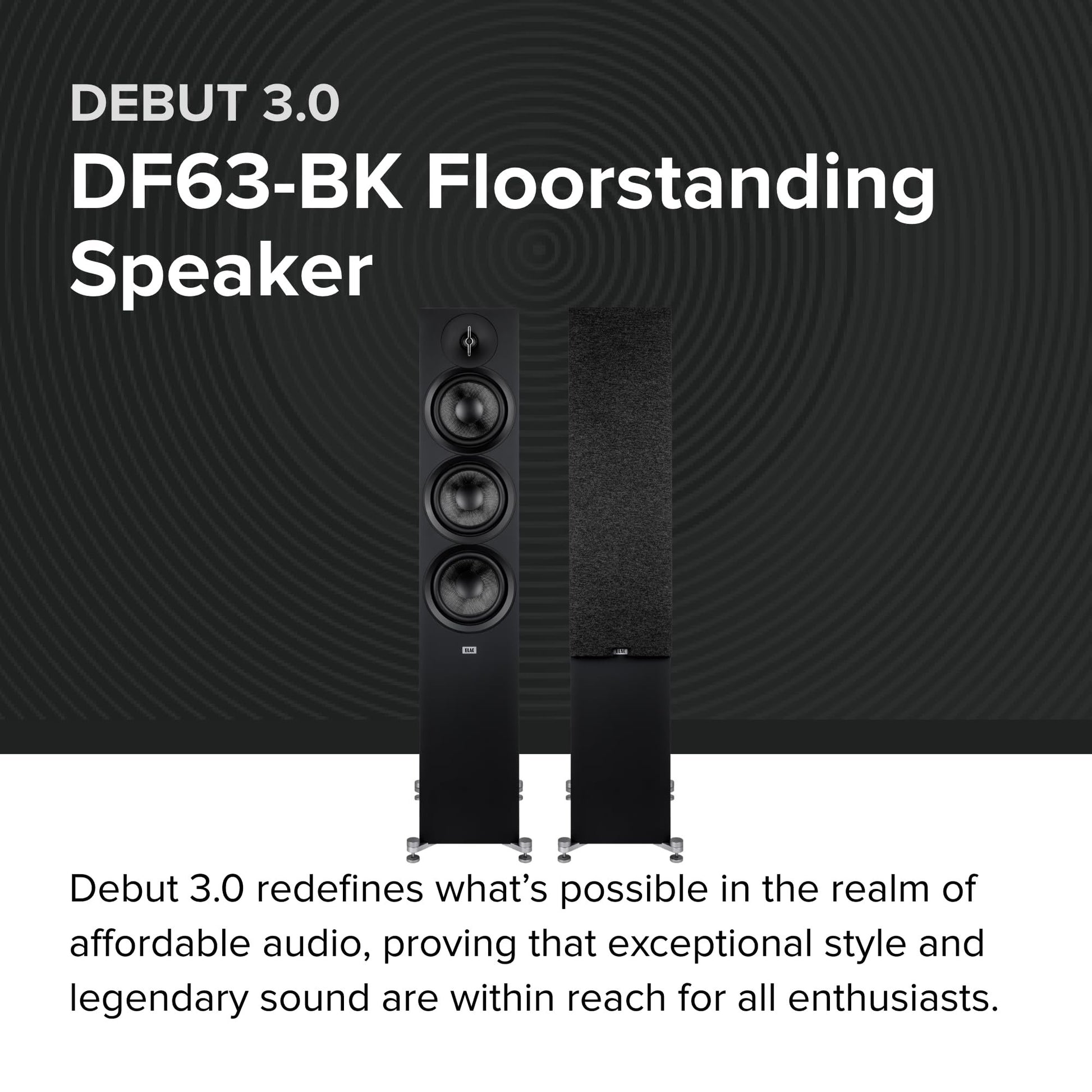 - FLOORSTANDING SPEAKER - The new ELAC Debut 3.0 series redefines what’s possible in the realm of affordable audio, proving that exceptional style and legendary sound are within reach for all enthusiasts.
