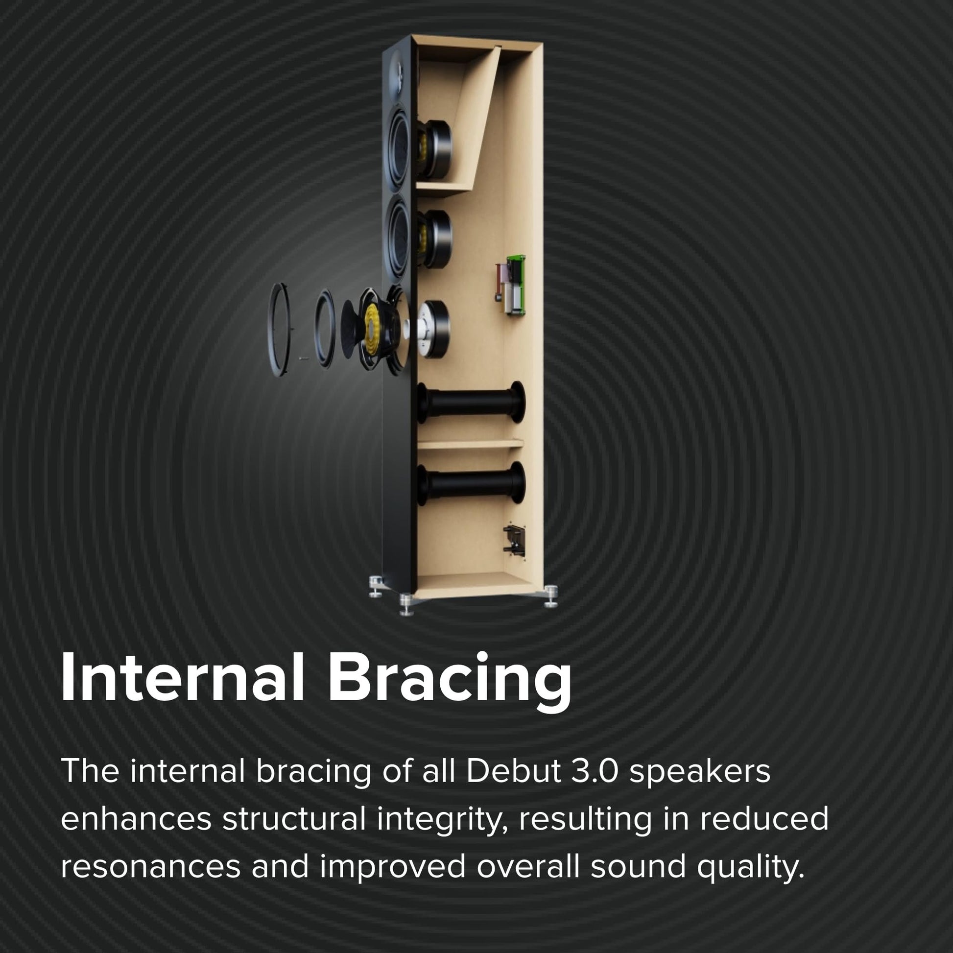 - INTERNAL BRACING - The internal speaker bracing significantly enhances performance. It reduces unwanted vibrations that can distort sound & ensures sound is primarily emitted from the speaker drivers (the woofer & tweeter) rather than the cabinet.