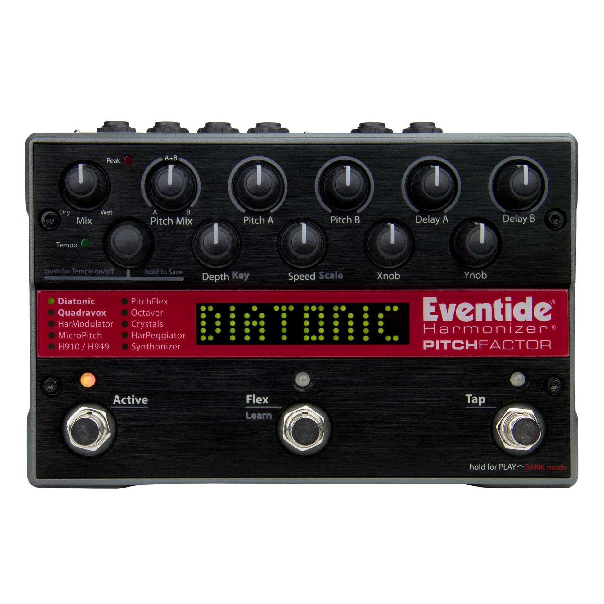 The PitchFactor is a stunning advancement in the world of stompboxes. Bringing studio-quality pitch-shifting from Eventide's massive arsenal of amazing effects to the studio or stage has never been easier. The PitchFactor is loaded with 10 of Eventide's signature pitch+delay effects. The PitchFactor offers tap tempo and MIDI sync, and has an expression pedal input. The PitchFactor features guitar and line level inputs and outputs for stereo operation and the software can be upgraded via USB. Craft perfect vocals with PitchFactor. 10 of Eventide's Signature Stereo or Mono Pitch+Delay Effects: Diatonic PitchFlex Quadravox Octaver HarModulator Chrystals MicroPitch HarPeggiator H910 / H949 Synthonizer Eventide's PitchFactor Features: Up to 4 voices of diatonic pitch shifting and up to 1.5 seconds of stereo delay Studio quality sound Guitar or bass compatible Built-in Tuner Software upgradeable via USB 2.0 MIDI control via USB or MIDI in, out/thru Instant program change Real-time control with 10