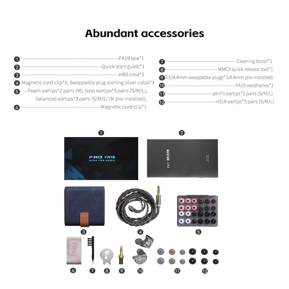 FiiO FA19 10 Balanced Armature in Ear Monitors | Audiophile Earphones with Detachable Pure Silver MMCX Headphone Cable