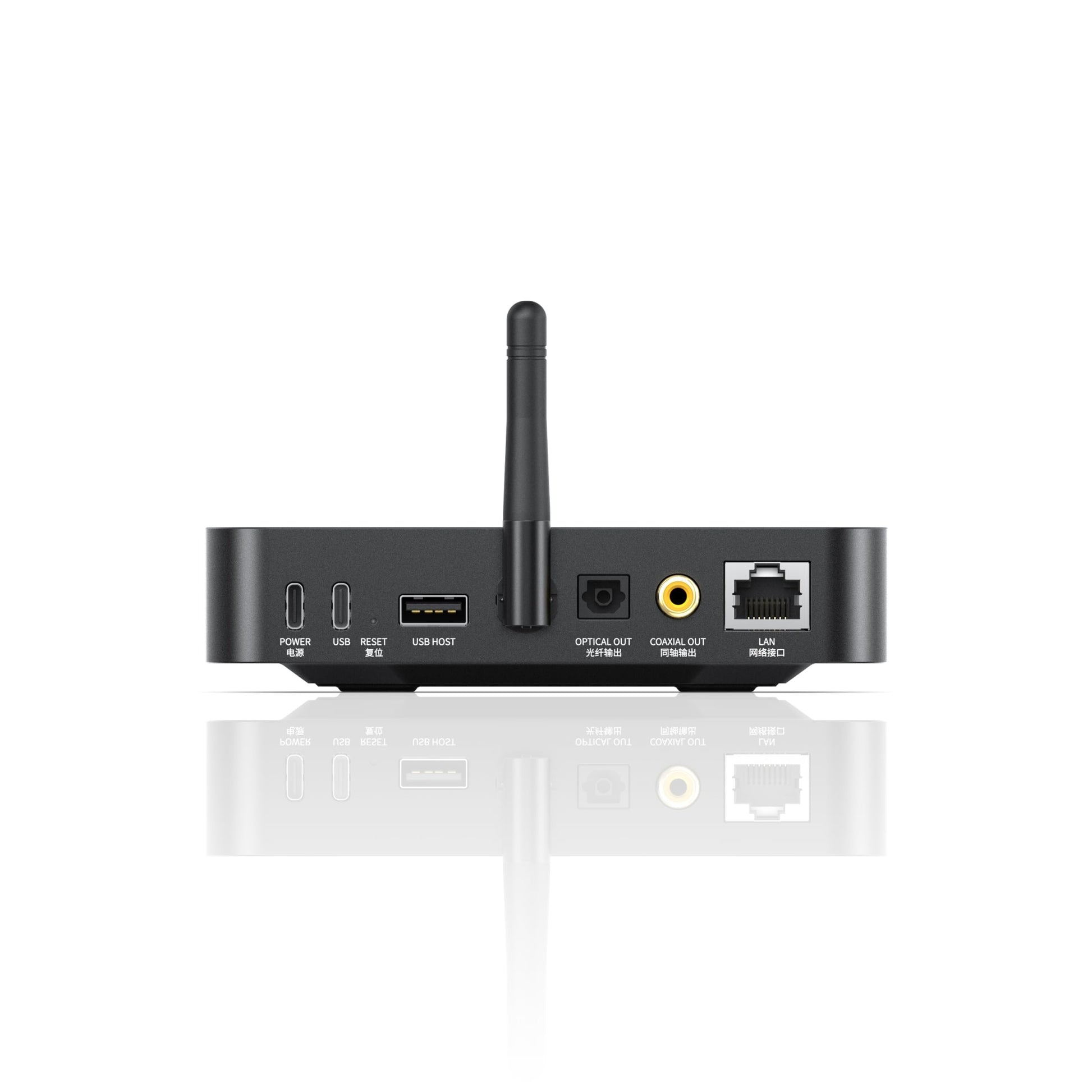 Supports AirPlay/Roon Ready | 1000Mbps Ethernet port | 2.4G+5G dual-band Wi-Fi | Supports 768kHz/32bit, DSD256 | Comprehensive digital outputs | Supports various music apps | Custom LCD display | Included infrared remote control | Dual USB outputs | Firmware upgrades for more functionality