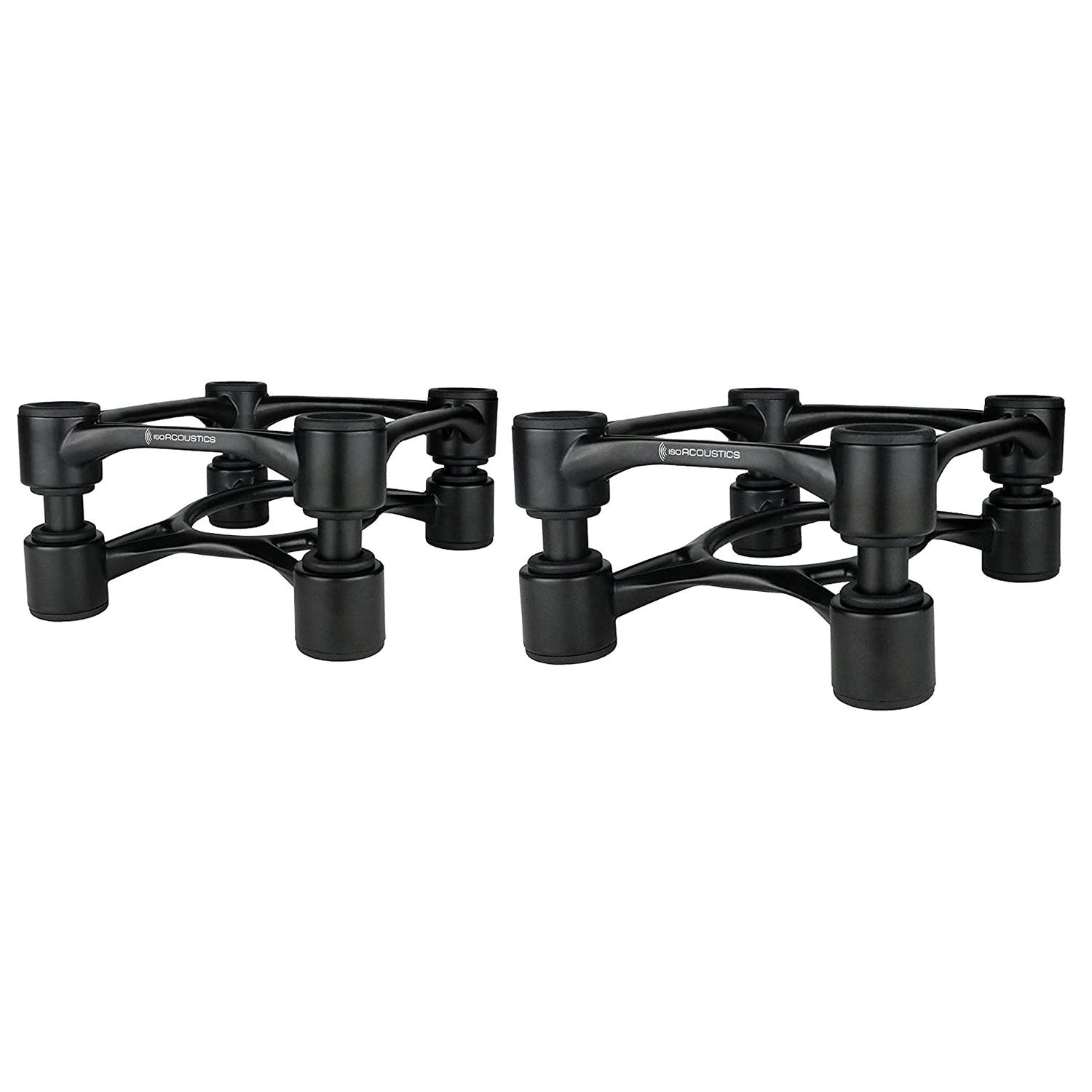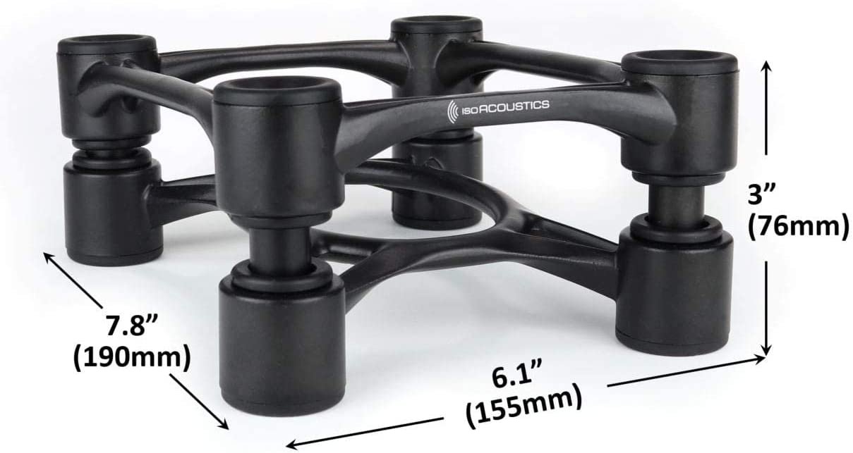 - SCULPTED ALUMINUM ACOUSTIC ISOLATION STANDS: 6.1” (155mm) Wide x 7.5” (190mm) Depth x 3” (76mm) Height. 35 lbs weight capacity. Black Color. Package includes 2 Stands.