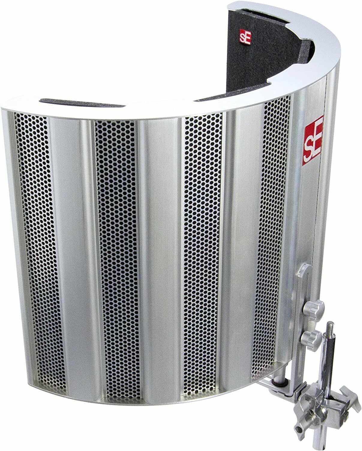 The largest and most effective addition to the classic Reflexion Filter lineup: RF SPACE.The RF SPACE (Specialized Portable Acoustic Control Environment) marks another step forward for the professional tracking engineer. With a larger surface area, enhancement of sE’s patented multi-layer technology, deeper air gaps, and more efficient materials, the SPACE offers great full-bandwidth absorption, isolation, and diffusion to help you gain control over your acoustic environment. Larger than our industry-standard RF Pro and entry-level RF-X, the added size also makes the SPACE filter perfectly suited for larger microphones.The best portable acoustic treatment on the market for recording vocals (and more) at home.sE's Multi-layer TechnologySeven Vertical Bass Trap PillarsPunched Aluminium DiffusorAcoustic-Grade Wool AbsorberTensioned Aluminum Foil Membrane DiffusorIsolating Air GapTensioned Aluminum Foil Membrane DiffusorAcoustic Grade Wool AbsorberPolycarbonate DiffusorAsymmetric Isolating Air GapsPatented Polyester Acoustic FiberboardBuilt By HandEach RF SPACE filter is meticulously hand-crafted by our team at the sE factory - not mass-produced by an army of machines - and made to last for years and years of recording.Flexible, Versatile HardwareNew specialized mounting hardware allows the SPACE to be easily mounted on any microphone stand or drum hardware, with a full range of motion – adjustable and lockable horizontally, vertically, and tilted at any angle. This makes the SPACE utterly stable and effective in any recording environment."If you're making records at home, you've got to have an sE Reflexion Filter."- Brian McKnight, legendary R&B singer/songwriterLarge Reflection filter that helps absorb ambient room sound but keeps a well-balanced sound. Designed for Acoustic environments. Multi-layeredThe RF SPACE (Specialized Portable Acoustic Control Environment) marks another step forward for the professional tracking engineerWith a larger surface area, enhancement of sE’s patented multi-layer technology, deeper air gaps, and more efficient materials, the SPACE offers great full-bandwidth absorption, isolation, and diffusion to help you gain control over your acoustic environment.Larger than our industry-standard RF Pro and entry-level RF-X, the added size also makes the SPACE filter perfectly suited for larger microphones.