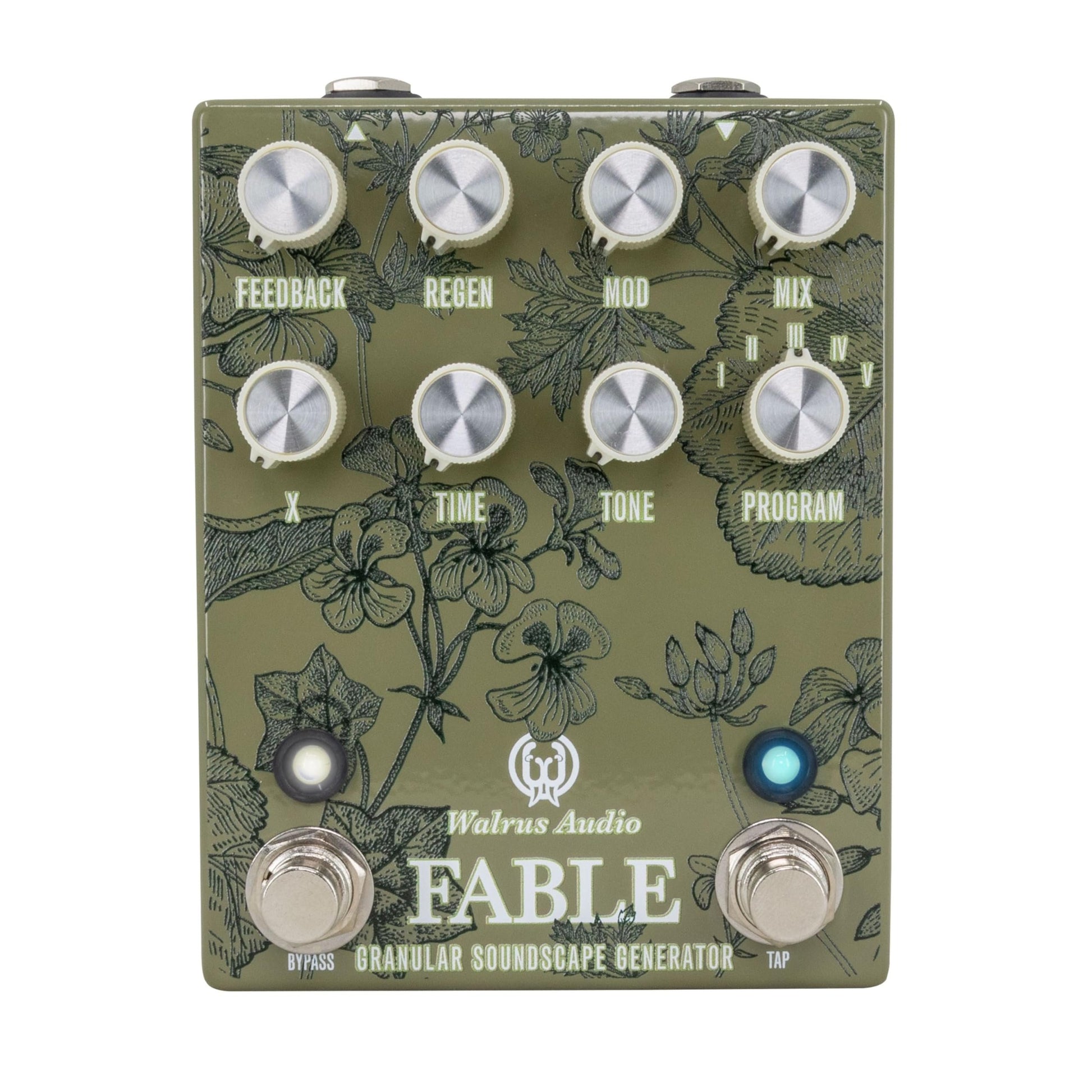 Plug in and Experience the Power of the Fable Imagine the mystic woodlands of the high north. Treefolk, known as the Fable, wander peacefully across the land. The elderly tree folk live in harmony with their young, who grow from the spliced limbs of each previous generation in an ongoing and harmonious reign of bizarre combinations. It’s this fantastical world that you’ll uncover in the chassis of the Fable Granular Soundscape Generator delay pedal from Walrus Audio. This pedal features five programs that harness the power of a dual DSP architecture that weaves sample and chop delay algorithms with granular effects. Musicians have a range of knobs to dial in the perfect sound, in addition to a buffered bypass and a tap tempo switch. From chaotic and swarmy to smooth and flowing to bizarre and organic, Sweetwater guitarists have found the Fable delivers.Delay programs and granular algorithms make the FableGranular Soundscape Generat Delay Pedal with 5 ProgramsTap Tempo - FlalBuffered BypassTime StretchModulation